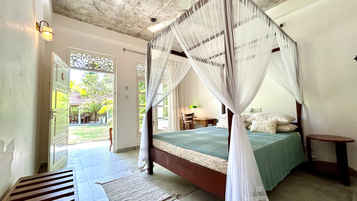 Sveiki atvykę į Ketature Beach House - jaukų, šeimos valdomą banglenčių namą, esantį vos už 25 m nuo Ketature paplūdimio pietvakarių Šri Lankoje. Šią ramią vietą, kurią siūlo Šriyani ir Sami, šilta vietinė Šri Lankos šeima, apsupta vešlių atogrąžų miškų ir palmių, puikiai tinkančių banglentininkams, poroms ir mažoms grupėms. Esant minimaliai trijų naktų viešnagei, daugelis svečių pratęsia savo vizitus, o jums taip pat gali patikti rami atmosfera ir stulbinantys vaizdai! Sodo dviviečiame kambaryje yra pusryčiai dviems.