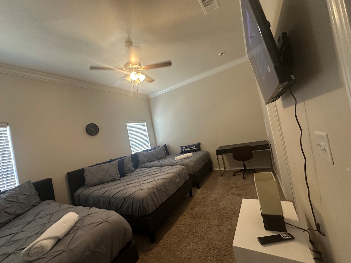 Sveiki atvykę į Midland. Mes esame netoli Gerardo Casita, Rosa kavinės ir Taco DeVino. Taigi, jei meksikietiškas maistas yra jūsų dalykas, mes jumis pasirūpinsime. Šis būstas yra ramioje gatvėje, vos už kelių minučių kelio nuo ClayDesta verslo centro ir miesto centro. Namai yra šviesūs ir atviri, su dviem miegamaisiais ir atskiru vonios kambariu pagrindiniame miegamajame, kuriame yra atskiras įėjimas į svečių miegamąjį. Miegamuosiuose yra 55colių išmanusis televizorius, kaip ir svetainė. Virtuvė yra pilnai įrengta, jei norite gaminti.