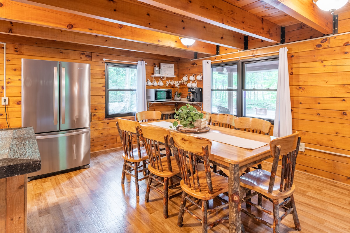 Žinoma, kad rąstinis namas Maine yra vienas seniausių namų, pastatytų Belvilyje, Pa. Ji buvo visiškai pertvarkyta ir renovuota. Rąstinis namas suteiks jums visą seną namų trobelę su visais šiuolaikiniais patogumais. Galite mėgautis terasa su vaizdu pavasario ir vasaros dienomis ir židiniu vėsiais rudens ir žiemos vakarais. Namas yra už 30 mylių nuo Penn State, už 10 mylių nuo Greenwood krosnies ir už 25 mylių nuo Raystown ežero.