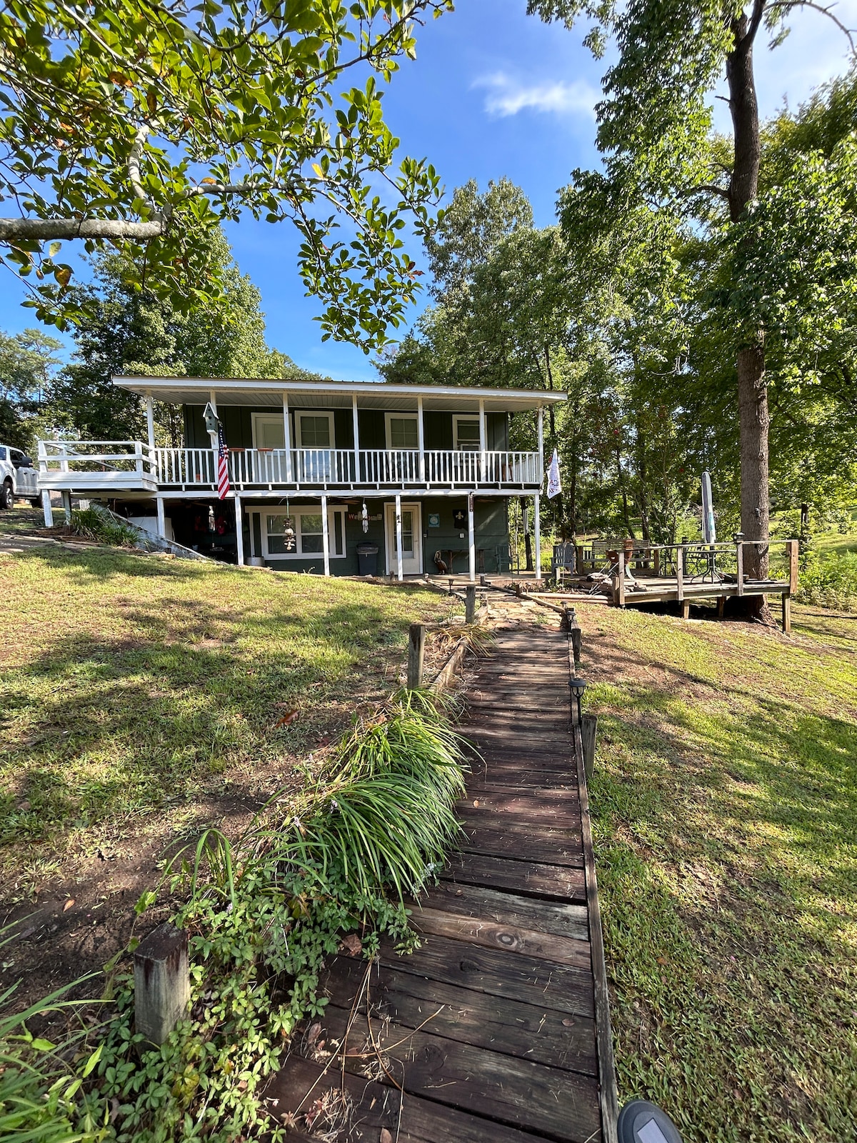 Atsipalaiduokite su visa šeima šiuose ramiuose namuose prie ežero. Labiausiai privati nuomos vieta, kurią rasite bet kurioje Toledo Bendo vietoje. Mėgaukitės privačia žvejybos prieplauka ir valtimi. Stebėkite plikuosius erelius, elnius ir kitus laukinius gyvūnus iš 2,5 akrų privačios pakrantės Sabinės nacionaliniame miške, nematydami kaimynų. Įsikūręs mažiau nei už 1 mylios nuo žūklės turnyro vietos, kuri netrukus bus baigta Nr. 1 Toledo Bende, Sabinetown parke (šiuo metu statomas).