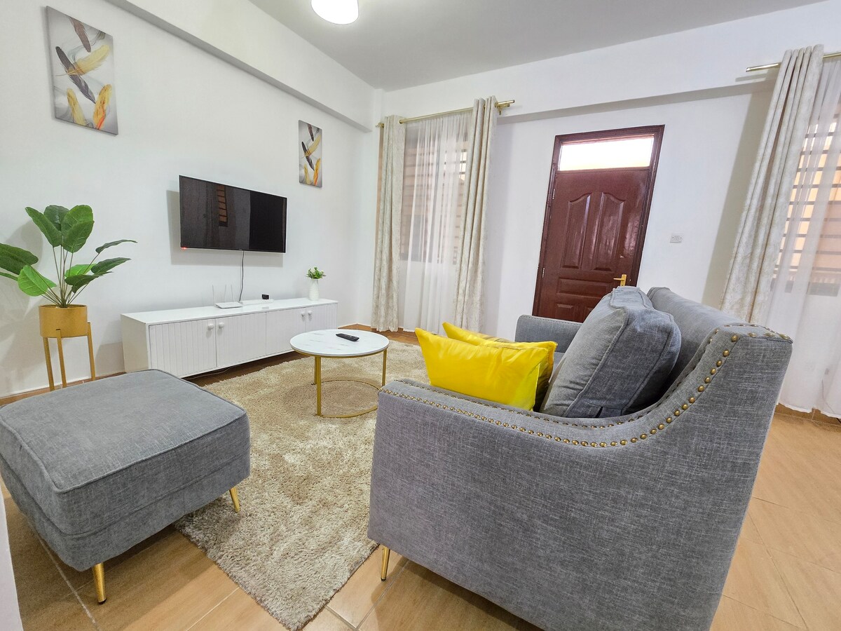 Modernus vieno miegamojo butas su moderniais baldais, pilnai įrengta virtuve, suteikiančia „namų toli nuo namų“ jausmą. Nesvarbu, ar ilsitės svetainėje transliuodami naujausias pramogas išmaniajame televizoriuje žiūrėdami savo mėgstamą „Netflix“ laidą, ar gerai pailsėsite ant jaukių lovų su prabangia balta patalyne, įsimylėsite viską, ką gali pasiūlyti butas. Įsikūręs vos už 2 km nuo kisumu CBD.