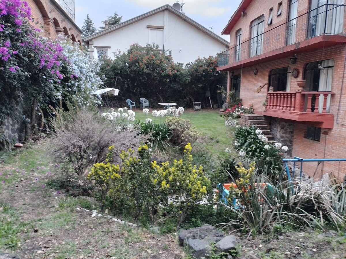 Zona Ajusco - į pietus nuo CDMX - privati trobelė Labai saugi uždaroji kolonija, netoli parduotuvių, restoranų ir CINÉPOLIS 5 kvartalai nuo didžiausio pramogų parko ŠEŠIŲ VĖLIAVŲ MEKSIKE ir Tlalpano MIŠKO (Caminata y hiking) 15 minučių nuo UNAM, metro UNIVERSITETO IR AJUSCO NACIONALINIO PARKO VIRŠŪNIŲ (žygiai, važiavimas dviračiu, žirgų nuoma, visureigis, gotcha, laipiojimas, rappelling) 5 minutės nuo COLMEX, UPN ir ASF., 10 minučių nuo Andželo Pedregal ligoninės