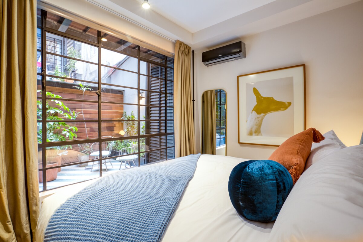 Iš šio gražaus pastato, vadinamo Casa Miravalle, atsiveria vaizdas į Parque México su 24/ 7 apsauga. Būsite sužavėti art deco tema, susieta su aukščiausios klasės patogumais, patogumais ir privačia terasa Butas buvo gerai apgalvotas, kad būtų užtikrintas jūsų komfortas, bute yra AC, pilnai įrengta virtuvė, išmanioji televizija, vonios drabužiai, Wi-Fi ir aukščiausios kokybės patalynė. Jus pasitiks mūsų būsto valdytojas, kuris galės jums padėti viešnagės metu.