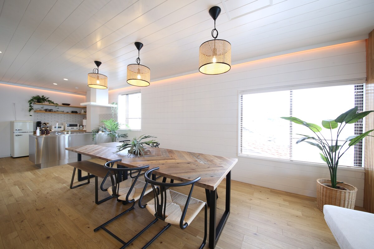 Vienas su panoraminiu vaizdu iš nuostabios terasos! 20 sekundžių pėsčiomis iki jūros, privačios įlankos vilos pietinėje Avadžio salos dalyje. [Villacation the Loose] yra atostogų vila, kurioje galima apsistoti tik vienai suaugusiųjų kurorto viešnagei per dieną. Įkvėptas Kalifornijos kurorto, pastate yra daug į kurortą panašių erdvių, įskaitant lauko terasą su panoraminiu vaizdu į Fukura įlanką, svetainę su įspūdingu vaizdu į vandenyną pro didelį atidaromą langą ir darbo vietą. Dienos metu mėgaukitės daugybe jūrinių užsiėmimų, pvz., SUP ir žvejyba, ir kepkite kepsnius terasoje, kur naktį su draugais pajusite jūros vėją. Taip pat rekomenduojame pasivaikščioti po uostamiestį su dviem nemokamais dviračiais. Mėgaukitės ypatingomis atostogomis jaukiu stiliumi kiekvienam asmeniui.
