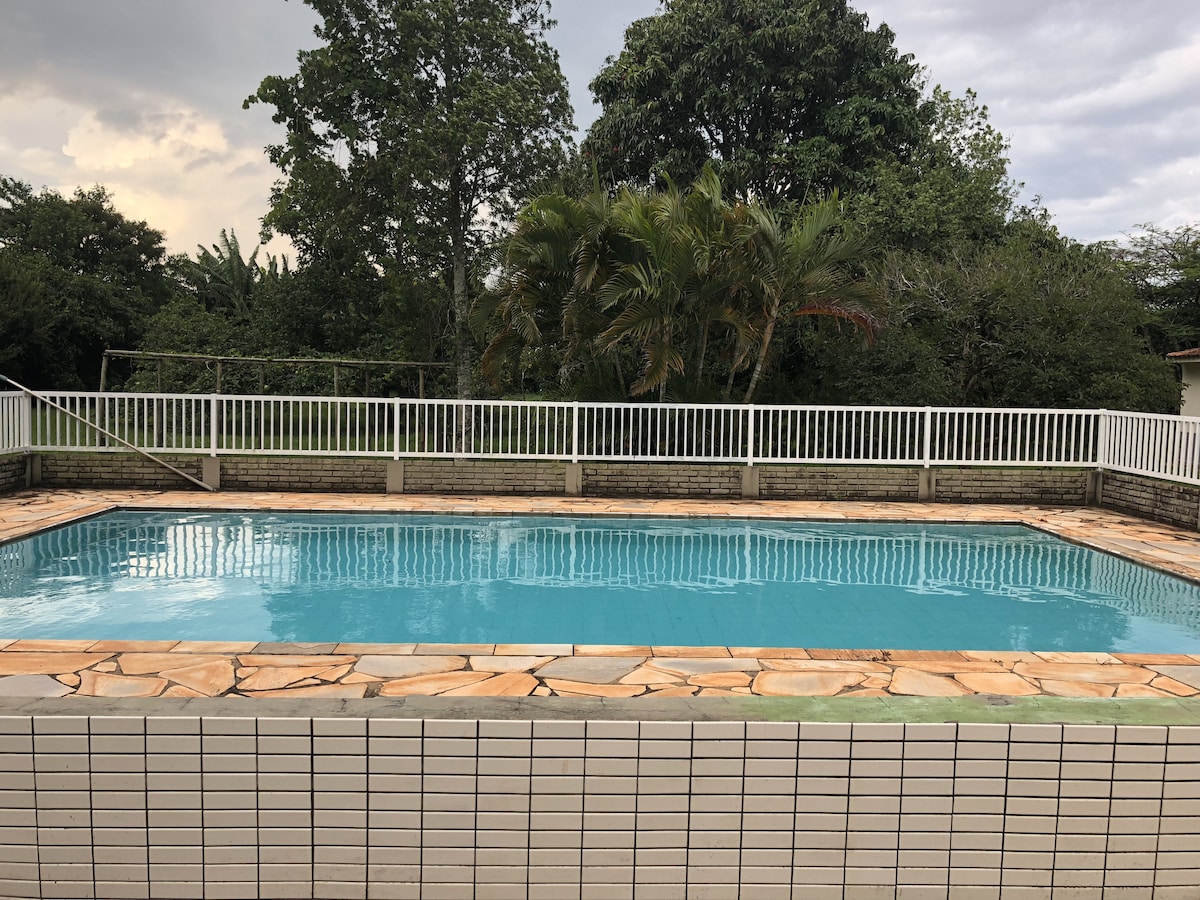 Atsipalaiduokite su visa šeima šiame ramiame būste, kuriame yra baseinas, žemė yra plati (7000 m2), visa veja ir gerai miškinga, įskaitant kelis vaismedžius. chácara yra už 5 minučių kelio nuo Torrinhos savivaldybės ir už 20 minučių kelio nuo įvairių Brotas turistų lankomų vietų.
