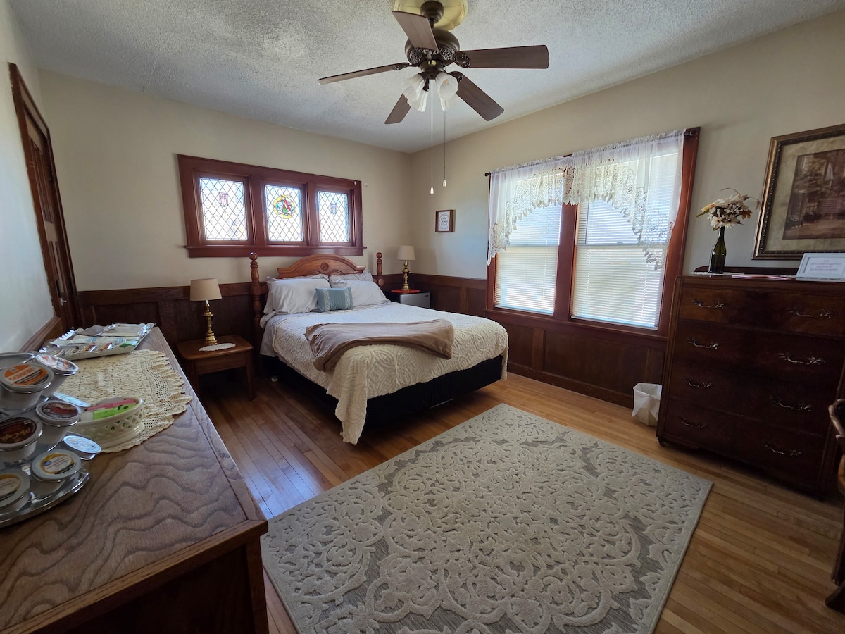 „Wooden Diamond B&B“ siūlo unikalią nakvynės su pusryčiais patirtį. Pritaikyta kiekvieno svečio norams, stengiamės, kad jūsų viešnagė būtų įsimintina, jauki ir atpalaiduojanti! Mūsų dviejuose nuolat besikeičiančiuose privačiuose kambariuose labai patogiai gali apsistoti iki 4 žmonių su šaldytuvu, mikrobangų krosnele, Keurig kavos aparatais (nemokamais mėgstamiausiais) AC, nemokamu belaidžiu internetu, televizoriumi ir privačiomis voniomis. „Sodybos“ dekoras tinka praėjusioms dienoms.