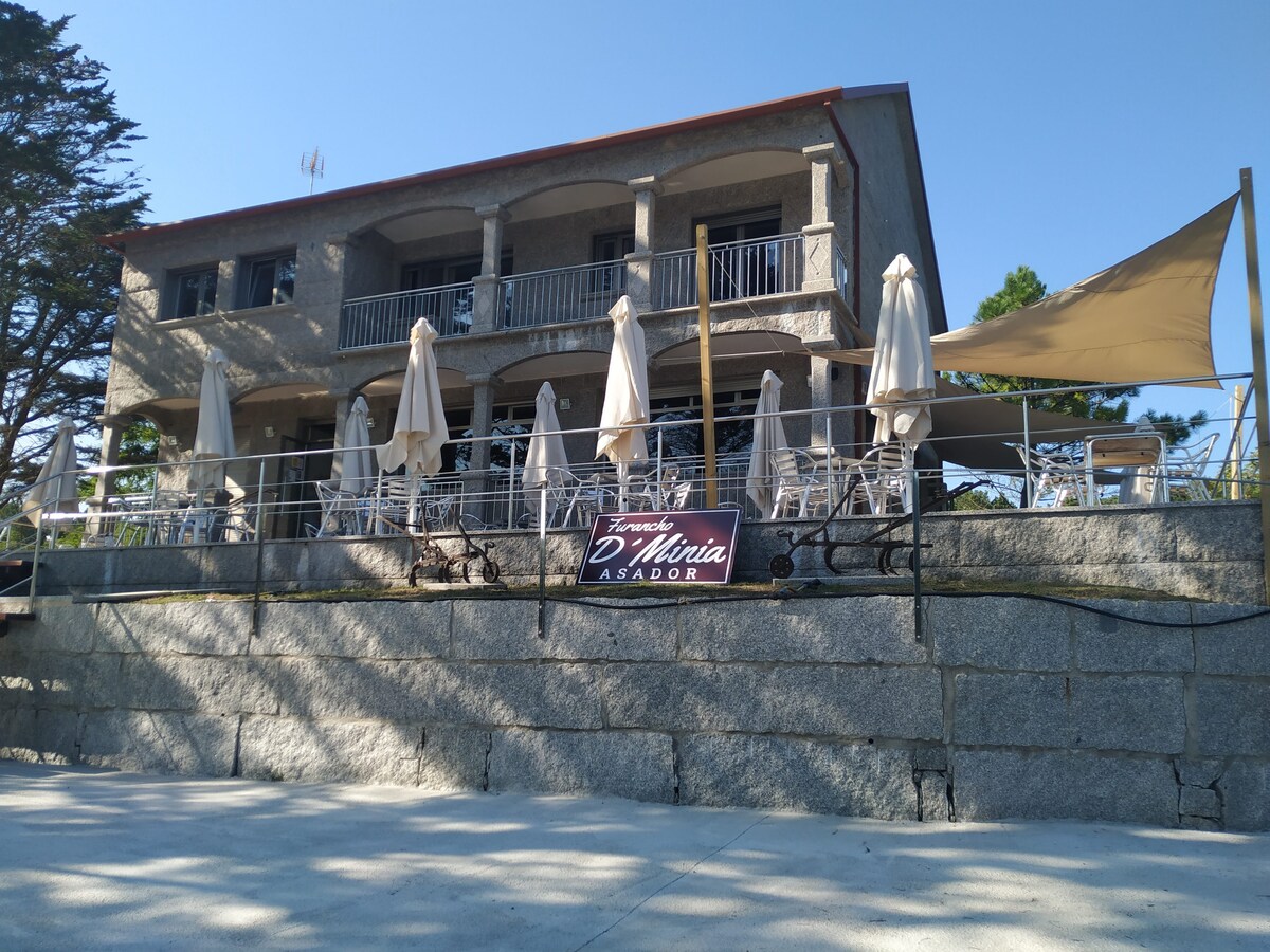 Mūsų apgyvendinimo vieta yra kaimo vietovėje netoli estuarijos, 11 km (trumpiausiu keliu) nuo La Lanzada paplūdimio, 1 km nuo tipiškos furanchos vietovės, 50 km nuo Vigo, 8 km nuo Cambados ir 15 km nuo Combarro. Žygių mėgėjams skirtas mažiau nei 3 km esantis Ruta Da Pedra e da Auga kelias. Už 3 km yra restoranas, kuriame galite mėgautis Galisijos virtuve kartu su savo augintiniais.