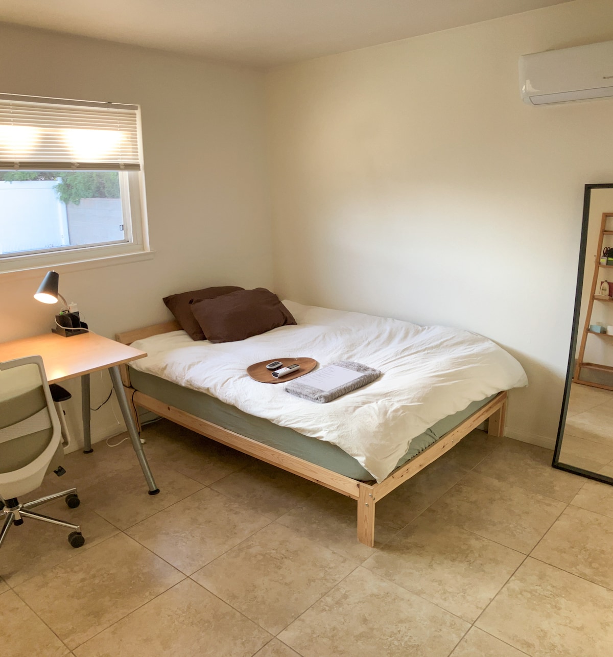 Tylus, viršuje esantis privatus miegamasis ir vonios kambarys Mira Mesa. Priklausomai nuo eismo, esame maždaug už 30-40 minučių kelio automobiliu iki oro uosto, zoologijos sodo, Balboa parko, miesto centro, SeaWorld, Legolando. Sorento slėnis 5 min. kelio automobiliu . Paplūdimiai ir UCSD 15 minučių kelio automobiliu. Kambaryje yra rašomasis stalas, televizorius su „Netflix“/kava/arbata/vandeniu, mini šaldytuvas, mikrobangų krosnelė, virdulys, ventiliatoriai, nešiojamasis kambarys A/C. Priekinėse duryse yra raktų pakabukas, leidžiantis lengvai patekti į vidų. Privatus vonios kambarys prie pat kambario durų. Automobilių stovėjimo aikštelė įvažiavime.