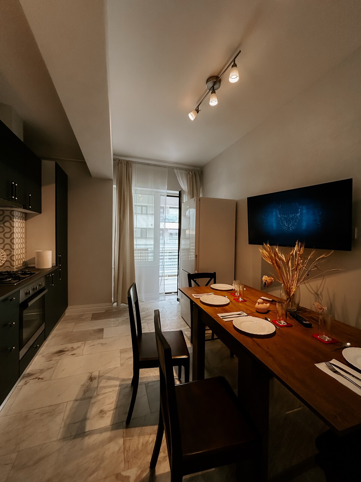 Sveiki atvykę į stilingą ir jaukų butą pačioje miesto širdyje, kuriame modernus dizainas dera su komfortu ir elegancija. Kiekviena detalė buvo kruopščiai parinkta, kad sukurtų šiltą ir patrauklią atmosferą – puikiai tinka atpalaiduojančiam ir įsimintinam pabėgimui iš miesto: • Erdvus 2 kambarių butas • Visiškai įrengta su moderniais baldais •Pilnai įrengta virtuvė •Patogi svetainė su konvertuojama sofa •Elegantiškas miegamasis su dvigule lova •Wi-Fi, 2 išmanieji televizoriai, nemokama prieiga prie „NETFLIX“ •Vonios kambarys su būtiniausiais patogumais