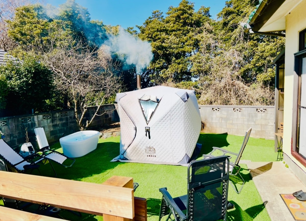 陶芸の町・益子町で、貸切サウナ&BBQ体験|日本の田舎リトリート ようこそ、「サウナ&ステイ吉日荘」へ。 東京から2時間、自然豊かな益子町で日本の田舎生活を満喫できる一棟貸切の宿です。 築40年の伝統的な日本家屋をリノベーションし、プライベートサウナ・BBQ・日本文化体験をお楽しみいただけます。 ご家族・友人グループで特別な休日に最適です。 ◆ プライベートフィンランド式サウナ 貸切サウナでロウリュ体験。ウッドデッキの水風呂と田舎の風を感じながらととのう贅沢な時間を。 ◆ 日本文化に触れる古民家ステイ 縁側(Japanese traditional porch)、昭和レトロな家具、益子焼の食器など、日本の暮らしを体験できます。 ◆ 庭で楽しむBBQ 広い庭でBBQ。自然に囲まれ、仲間とゆったり過ごせます。(BBQセット有料貸出あり) <ご案内> ・自然豊かな場所のため、季節によって虫が現れることがあります。 ・冬季は冷え込みます。暖かい服装でお越しください。 皆さまのお越しを心よりお待ちしております