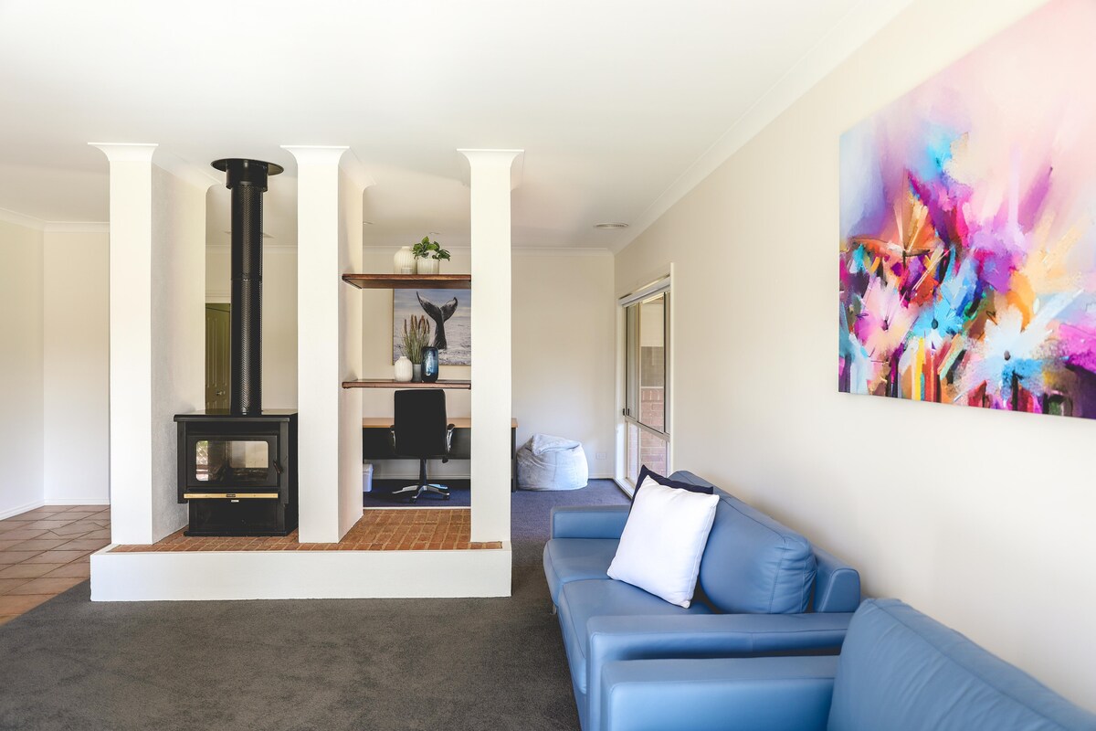 Pasivaikščiokite iki miesto, baseino, Entertainer's Dream. Sveiki atvykę į savo privačią Echuca poilsio vietą – gražiai atnaujintą 3 miegamųjų, 2 vonios kambarių namą, puikiai įsikūrusį vos už kelių minučių pėsčiomis nuo miesto centro. Su aukštomis lubomis, šiltomis medinėmis grindimis ir lengvai derančiais šiuolaikiniais patogumais bei nesenstančiu stiliumi, tai ideali vieta šeimoms, poroms ar mažoms grupėms, norinčioms atsipalaiduoti, pramogauti ir tyrinėti.