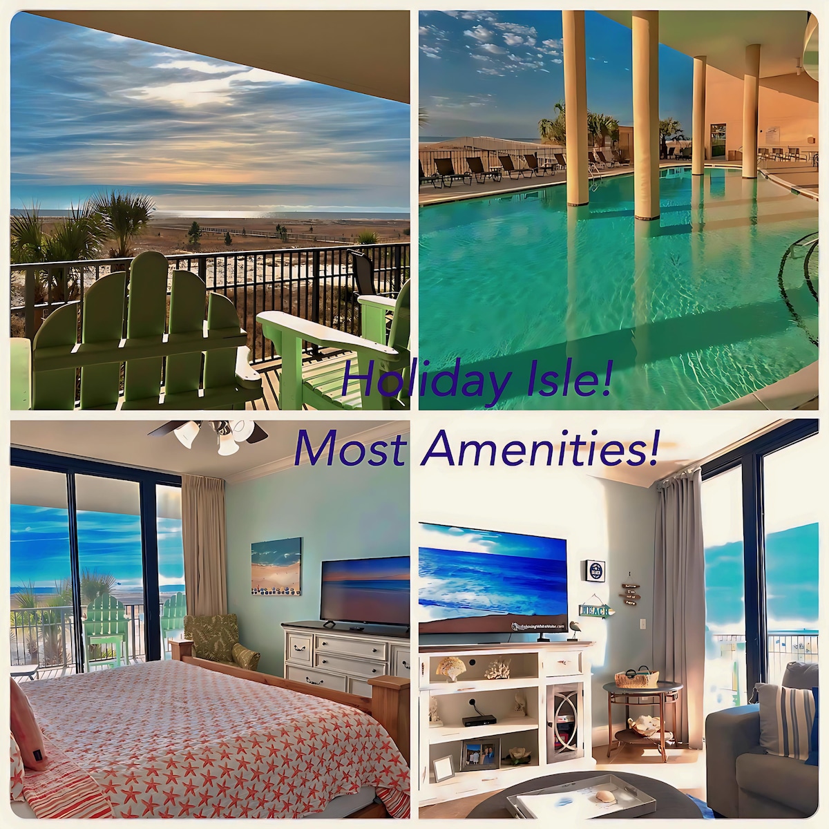 Holiday Isle yra pagrindinis Dauphin salos kompleksas! Iš šio gražiai įrengto pirmojo aukšto buto su negabaritiniu balkonu atsiveria kvapą gniaužiantys vaizdai į Meksikos įlanką! Skoningai dekoruotas ir šviesus, atviras aukšto planas. Patogumai: vidaus/lauko baseinas, sūkurinė vonia, sauna, sporto salė, teniso/pikniko aikštelės, dengta automobilių stovėjimo aikštelė, kepimo zona, gražus vestibiulis, įėjimas su vartais ir dar daugiau. Dofino sala yra rami poilsiavietė su vietiniais restoranais, puikia žvejyba, paukščių stebėjimu ir nuostabiausiais saulėlydžiais.