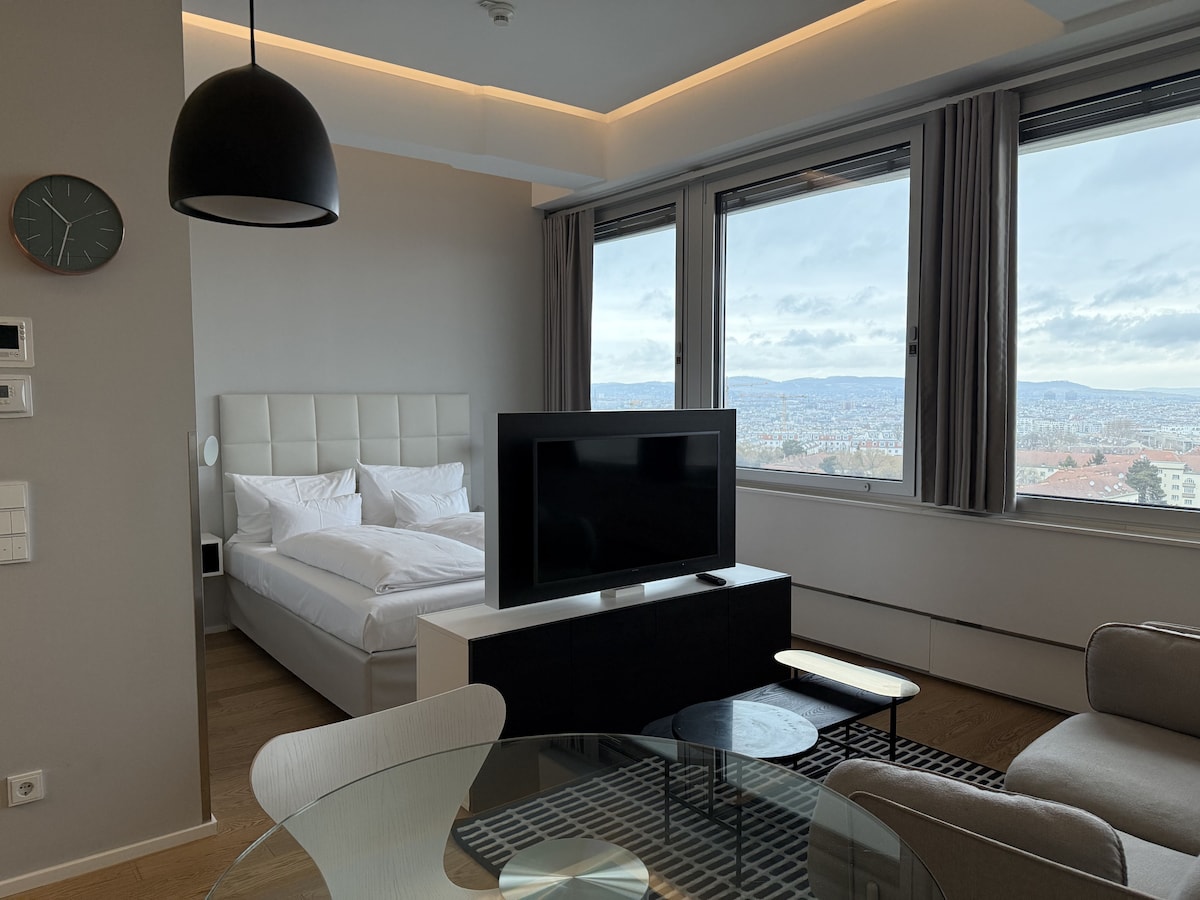 Sveiki atvykę į modernią poilsiavietę Vienoje! Šiame gražiai suprojektuotame bute siūloma stilinga ir patogi viešnagė, puikiai tinkanti tiek verslo keliautojams, tiek turistams. Šis butas su šiuolaikišku interjeru su aukščiausios klasės baldais, pilnai įrengta virtuve ir kvapą gniaužiančiais miesto vaizdais užtikrina atpalaiduojančią ir patogią viešnagę.