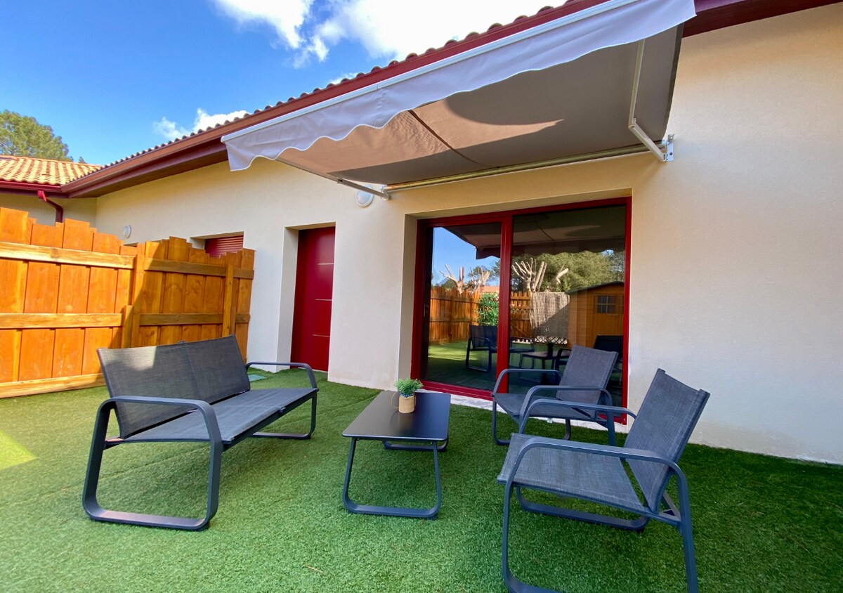 Netoli paplūdimių, Landų miško širdyje. Būkite suvilioti šiame ramybės prieglobstyje, kuriame yra visiškas privatumas (veikia tik nuo gegužės 15 d. iki spalio 15 d.). Šeimos atostogos mėgautis banglenčių sportu, dviračių takais ar paplūdimiais? Savaitgalis su draugais atsipalaiduoti ir mėgautis pasivaikščiojimais prie jūros? Šis būstas jums tiks, kad ir ko norėtumėte apsistoti. Jūsų augintinis yra Sveiki atvykę (su sąlygomis). Sodas yra uždaras.