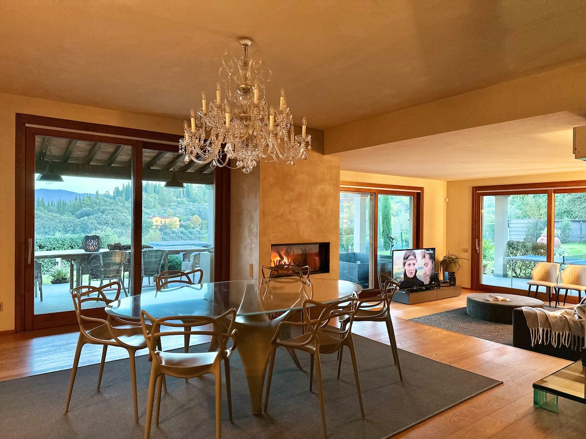 Jauskitės netoli žemės kaimiškame pastate Toskanos ūkyje. Senos akmeninės sienos, lubos su atviromis sijomis ir terakotos grindimis yra būdingo buto su židiniu fonas. Pasinerkite į bekraštį baseiną, iš kurio atsiveria unikalus vaizdas į aplinkinį kraštovaizdį. Valgykite lauke, o grynas oras jus glosto, sėdėkite ir atsipalaiduokite, žavėdamiesi saulėlydžiu po senoviniais kiparisais.