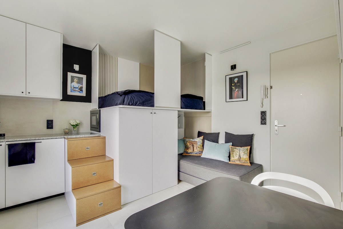 Ši 31 kv. m studija, įsikūrusi Paryžiaus širdyje, akmens mėtymo nuo Champs Élysées ir Parc Monceau, buvo visiškai renovuota 2021 m. Šioje studijoje yra: - dvigulė lova - Spintelės, lygintuvas, - išmanioji televizija - Wi-Fi - pilnai įrengta virtuvė - skalbimo mašina, valymas/džiovinimas, džiovinimo grotelės - vonios kambarys su dideliu dušu, WC, plaukų džiovintuvu - darbo erdvė su stalu Kelios minutės pėsčiomis: metro, kepyklos, restoranai, skalbykla, mini turgūs, vaistinės.