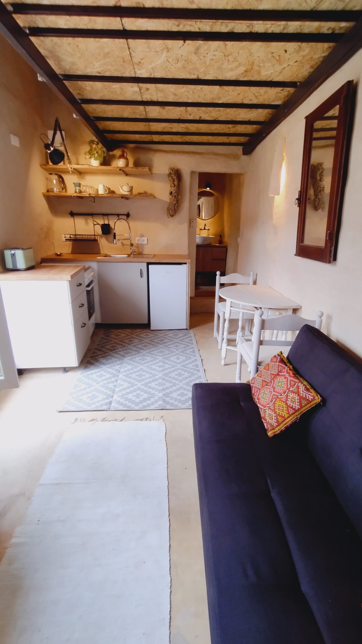 Step into this beautifully refurbished independent studio, nestled in an ancient Portuguese house full of character and soul. With thick stone walls, high ceilings, and plenty of natural light, this cozy space stays pleasantly cool in summer and warm in winter. Enjoy the peace of nature, relax in a spacious rustic-cozy style, and cook your own meals in a fully equipped private kitchen. Perfect for travelers seeking comfort, charm, and calm. Special opening price.