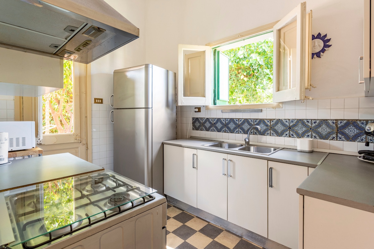 Gražus šviesus apie 100 kv. m butas pirmame dviejų aukštų vilos aukšte, vos už 350 metrų nuo garsaus Mondello paplūdimio, žalioje ir ramioje gatvėje. Namą sudaro 2 miegamieji, didelė svetainė, virtuvė su visais patogumais, 1 vonios kambarys su dušu, galinis kiemas su lauko dušu ir stalas vakarienei. Viskas įrengta taip, kad svečiai jaustųsi patogiai ir galėtų atsipalaiduoti. Automobilį galima statyti netoliese, o autobusų stotelė yra už maždaug 150 metrų. Nemokamas Wi-Fi ir oro kondicionierius.