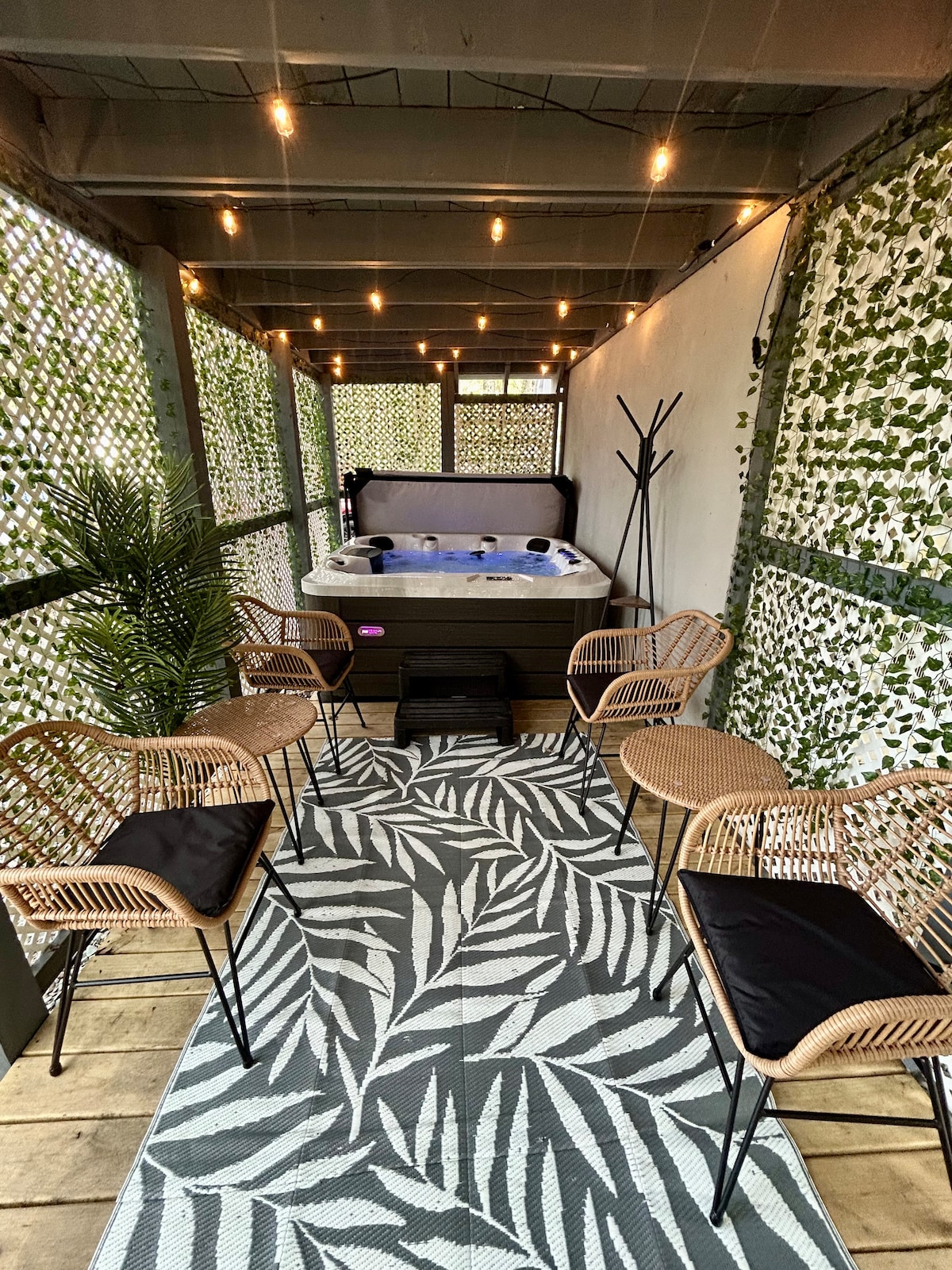 Atoki trobelė prie ežero su sūkurine vonia ir vaizdu
