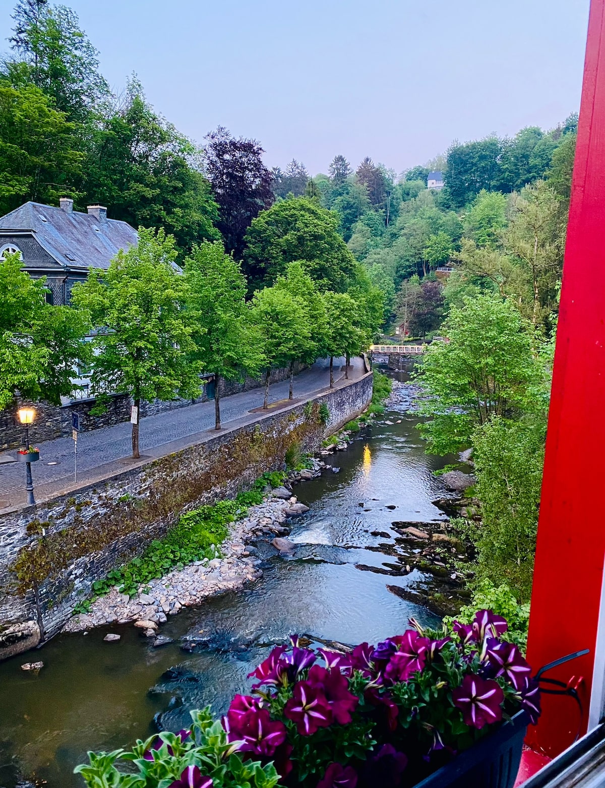 Būkite sužavėti Monschau. Miegosite ir apsistosite daugiau nei trijų šimtų metų senumo audinių gaminimo namuose pačioje Monschau širdyje. Tiesiai už mūsų namo teka Ruras; kai langas atidarytas, jie girdi, kaip teka vanduo, ir iš jų atsiveria nuostabus vaizdas į Rur kaimą į Raudonąjį namą. Nekantrauju pasimatyti. Geriausi linkėjimai Jutai ir Dietmarui