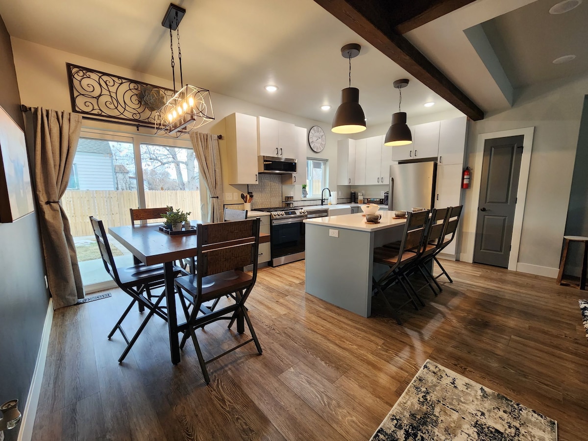 Mėgaukitės viešnage šiame stilingame „naujame pastate“. Pradinis namas buvo pastatytas 1900 m., tačiau namas buvo atnaujintas į rėmelį. Šiuos namus galima lengvai pasiekti apsipirkimą, restoranus ir tarpvalstybinį būstą. Papildomi patogumai yra karališko dydžio reguliuojama lova su masažu šeimininko kambaryje ir Bose Soundbar, kad galėtumėte mėgautis išskirtiniu klausymu žiūrint televizorių arba klausantis muzikos. Džiaugiamės, kad šie namai jums bus patogūs, o viešnagė - maloni. Tvarkymo mokestis netaikomas!