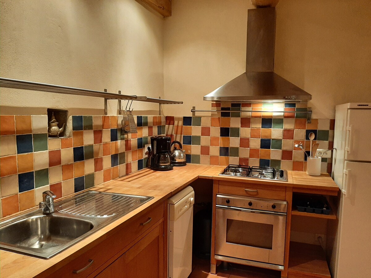 Džiaugiamės galėdami pakviesti jus atrasti šią ramybės oazę netoli Ardešo regiono. Kotedžas (2-4 asmenims) įrengtas pertvarkytame pastate, esančiame tipiškame kaime ant kalvų virš Cèze slėnio. Išsaugotas Provanso stilius. 55 m² kotedže yra: svetainė su dviem sofomis, iš kurių viena yra sofa-lova; pilnai įrengta virtuvė ir išėjimas į terasą su stalu; vienas miegamasis (karališko dydžio lova); ir vonios kambarys su dušu ir vonia.