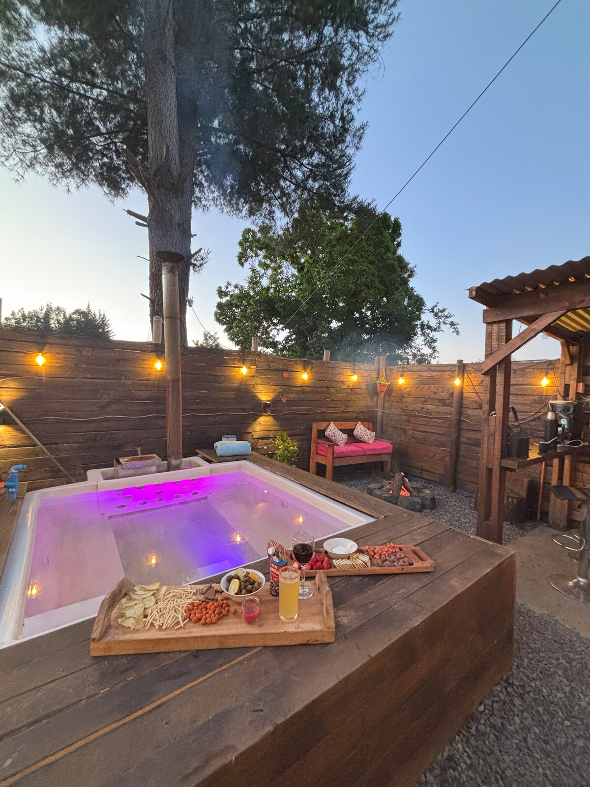 📌Atsipalaiduokite su partneriu ar draugu, atsijunkite nuo miesto triukšmo ir taršos. Trobelė yra įrengta (🛜Wi-Fi ryšys ir oro kondicionierius visos viešnagės metu), priešais trobelę yra erdvė, skirta dalytis šalia viryklės. - Šalia jo rasite stiklo pluoštu dengtą vonią, kurioje telpa 6 žmonės, kurioje yra trys hidromasažo purkštukai, kurie padarys jūsų potyrį malonesnį, kad galėtumėte kuo geriau išnaudoti viešnagę.