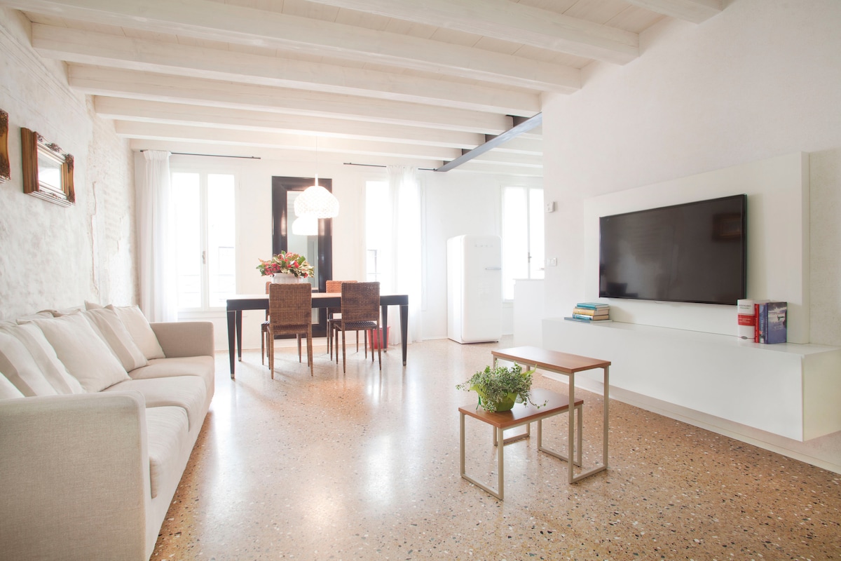 Jaukiai įsitaisykite su knyga, papusryčiaukite ir pavakarieniaukite žavėdamiesi neįtikėtinu Venecijos varpinių bokštų ir kanalų vaizdu, gyvenkite kaip tikri Venecijos gyventojai tipiškiausiame Venecijos rajone vos už kelių žingsnių nuo Rialto tilto, Ca 'D' oro ir San Marco bute, užbaigtame Venecijos ir Murano amatininkų baldais ir ornamentais. Jausitės taip, lyg patirtumėte fantastišką 1800-ųjų atmosferą, bet su visais šiuolaikinio buto patogumais. Nepraleiskite šio nuostabaus potyrio