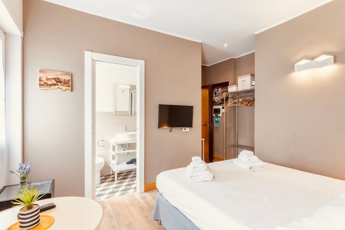 Privati erdvė su prieiga prie terasos, kurioje galite mėgautis karštu puodeliu arbatos ar kavos bet kuriuo metu. Nors yra virtuvė, negalite gaminti maisto, bet galite atsivežti maisto. Gana privačioje gatvėje, už 1,3 km nuo Vatikano ir už 2,2 km nuo olimpinio stadiono. Tinka vienam ar dviem žmonėms. Jis pilnai įrengtas, yra 160 x 200 cm dydžio lova, erdvi spinta ir privatus dušas. Turėsite maksimalų privatumą, o mes esame vos už kelių minučių kelio, jei mūsų prireiks.