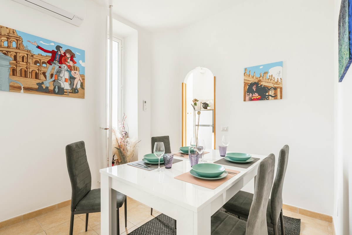 Patirkite Romą tikruose namuose, kur dizainas, spalvos ir komfortas puikiai dera su šviesa, todėl sakote: „Oho!“ Pilnai įrengtas, lengvai pasiekiamas, nesvarbu, ar atvykstate traukiniu, ar lėktuvu, tinka trumpalaikėms ar ilgalaikėms viešnagėms, nesvarbu, ar tai būtų laisvalaikis, ar verslas, jis yra netoli miesto centro, netoli visų turistų lankomų vietų, tačiau saugioje, ramioje ir strateginėje miesto tyrinėjimo vietoje: pėsčiomis, dviračiu ar autobusu, ši vieta puikiai tinka jums ir patirti Romą!