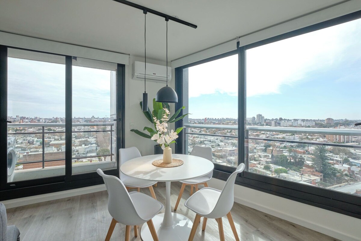 Šviesi erdvi 18-o aukšto studija su panoraminiu vaizdu į Montevidėją. Yra pilno dydžio lova, konvertuojama į stalą, virtuvė, vonios kambarys, spintos, sofa-lova, 55colių išmanusis televizorius, 5G šviesolaidinis internetas, skalbyklė ir balkonai. Mėgaukitės aukščiausios kokybės patogumais: visą parą veikiančiu konsjeržu, šildomu vidaus baseinu, lauko baseinu, sporto sale, sauna ir panoraminėmis bendradarbystės erdvėmis unikalioje architektūrinėje aplinkoje. Gyvybingas rajonas, laiptai nuo Buceo paplūdimio, apsipirkimas ir puikus viešasis transportas. Daugiau prabangos už mažesnę kainą. Užsisakykite dabar.