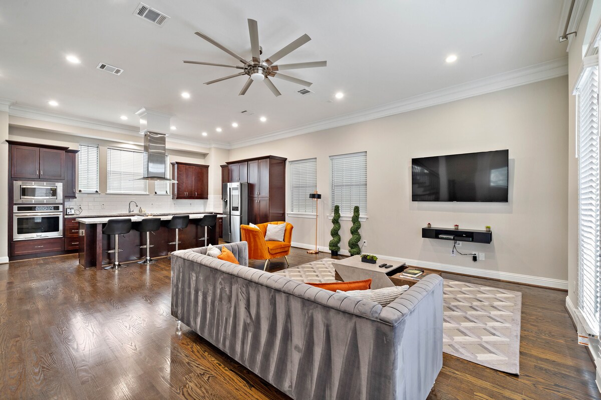 Patirkite tai, kas Hiustone geriausia šiuose moderniuose, muzikos įkvėptuose prabangiuose namuose! Ši stilinga poilsiavietė, esanti netoli miesto centro, stadionų ir populiariausių lankytinų vietų, siūlo komfortą, patogumą ir drąsų dekorą. Puikiai tinka atostogoms, renginiams ar trumpoms išvykoms. Nepraleiskite galimybės užsisakyti viešnagę jau šiandien! Reikia daugiau vietos būriui? Išsaugokite mūsų DVIGUBĄ skelbimą su abiem namais: airbnb.com/h/seven13chatea-dual Užsisakykite dabar. Atsineškite energijos. Apsistokite prabangoje. 🎶