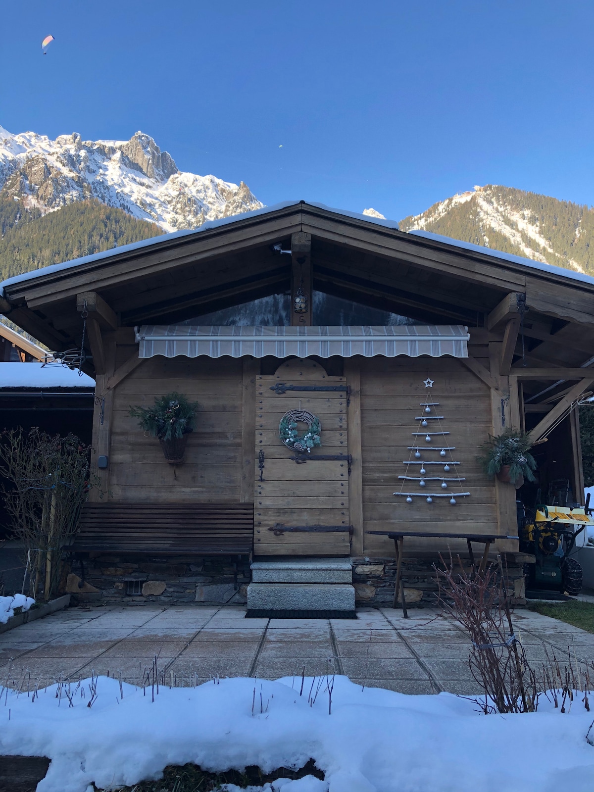 Mazotas 1986 metų 15m2 su mezoninu 7m2. Galimybė miegoti sofoje-lovoje 2 vietos apačioje arba lovoje 2 vietos mezoninas. Mažas medinis namelis, visi reikalingi patogumai, svetainė-virtuvė pilnai įrengta, vonios kambarys su dušu, mezoninas su vaizdu į visą Mont Blanc grandinę. Puikus WiFi tinklas + televizorius Didelė privati lauko terasa su sodo baldais. Privati automobilių stovėjimo aikštelė. Tentai/antklodės/pagalvės. Įskaičiuoti pusryčiai.