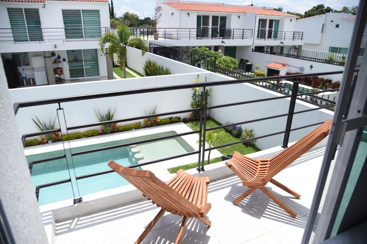 Graži šiuolaikinė vila su išskirtiniu dekoru ir atpalaiduojančia atmosfera. Ši vieta yra Covid-19 „įrodymas“ su atviromis erdvėmis ir kambariais, nukreiptais į centrinį sodą, kurie gali būti palikti atviri, kad būtų galima optimaliai vėdinti, ir terasa, kurioje galima užsiimti didžiąja dalimi veiklų. Ideali vieta pailsėti ir praleisti laiką su šeima ir draugais jaukioje ir saugioje aplinkoje. Atviros erdvės ir gražus baseinas, kuriame galėsite mėgautis unikaliu Kuernavakos oru!
