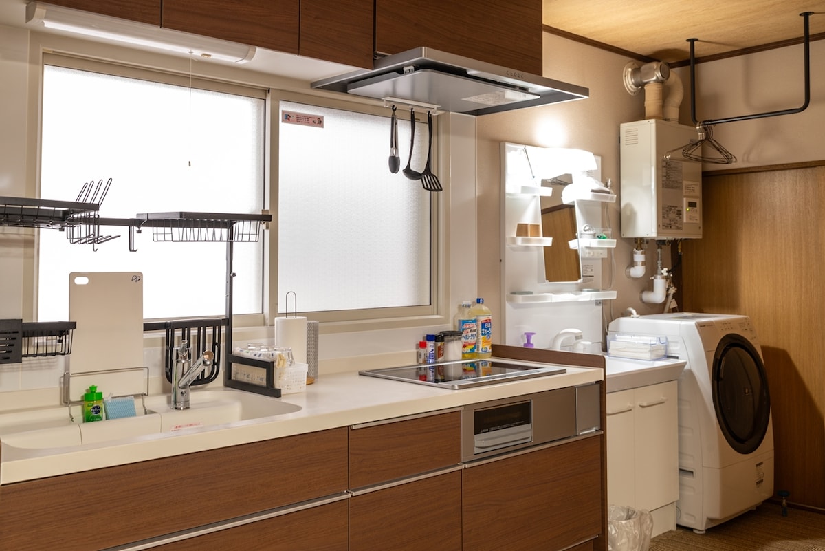 Mes atnaujinome 124 ㎡ namą (2 aukštų pastatą) ramioje gyvenamojoje zonoje.Svetainėje yra fortepijonas, kuriuo galite laisvai groti.Japoniško stiliaus kambarys pirmame aukšte gali būti naudojamas kaip arbatos kambarys su arbatos reikmenimis.Jei norite, galite pasikviesti arbatos ceremonijos instruktorių, gyvenantį Hakodate, ir mėgautis autentiška arbatos ceremonija.Taip pat galime paskolinti jukata. Svetainė ir trys japoniško stiliaus kambariai yra erdvūs.Yra Wi-Fi, antrame aukšte yra darbo vieta, tinkama darbui.Tai standartinis būstas 4 asmenims, tačiau jei norite apsistoti su daugiau nei 5 asmenimis, pvz., šeima, susisiekite su mumis. Puikiai įrengta ilgesnėms viešnagėms, įskaitant virtuvę, skalbimo mašiną, džiovyklę ir lygintuvą.Netoliese yra prekybos centrai, būtiniausių prekių parduotuvės, sobos parduotuvės, kavinės, alkoholinių gėrimų parduotuvės ir kt.8 minučių pėsčiomis nuo Chuo Whip atsiveria panoraminis vaizdas į kalnus, supančius Hakodate uostą, pvz., Hakodate kalnas, ir tai puikus pasivaikščiojimas prieblandoje.Mėgaukitės kelione į Hakodatę kaip vietiniai. Vieta yra beveik pusiaukelėje tarp JR Hakodate stoties ir Goryokaku parko, už 20 minučių kelio automobiliu nuo Hakodate oro uosto ir už 8 minučių kelio automobiliu nuo JR Hakodate stoties.Taip pat galite naudotis autobusu.