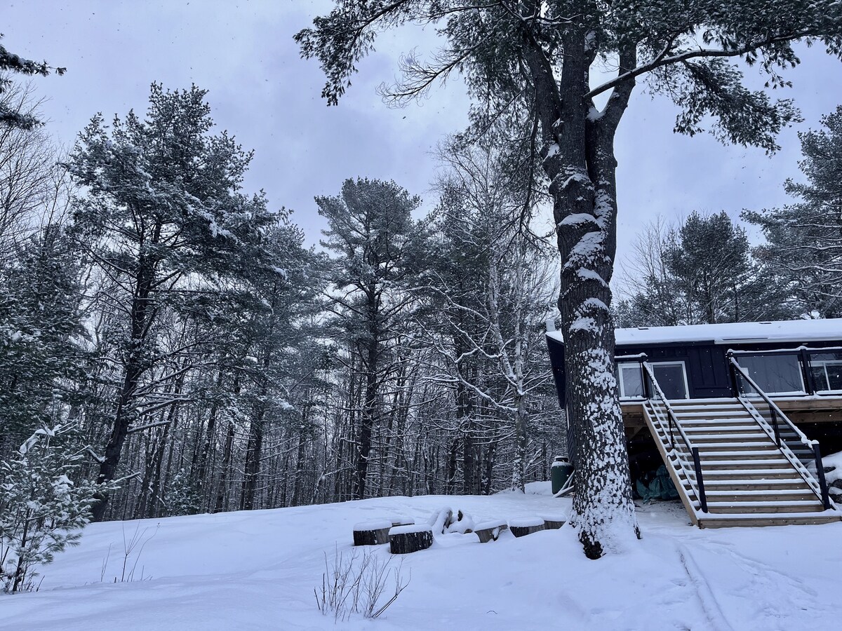Pabėkite į mūsų išskirtinį „A-Frame TreeHouse“, esantį tarp snieguotų Muskoka medžių netoli Hantsvilio, Ontarijuje. Sulėtinkite tempą, jaukiai įsitaisykite ir mėgaukitės žiemos grožiu. Praleiskite vakarus prie židinio, mirkykite po žvaigždėmis sūkurinėje vonioje arba leiskitės į nuotykius - netoliese yra slidinėjimas, pasivaikščiojimas sniegaeigiais, čiuožimas ir žygiai pėsčiomis. Išskirtiniai bruožai - Sūkurinė vonia ir židinys - Yra sniegbačiai. - Šviežias snieguotas miško vaizdas - Nemokamas Ontarijo parkų leidimas. - 10 min. pėsčiomis iki slidinėjimo kalvos ir ežero Nuotraukų ir įkvėpimo 📷 ieškokite daugiau @ door25stays!