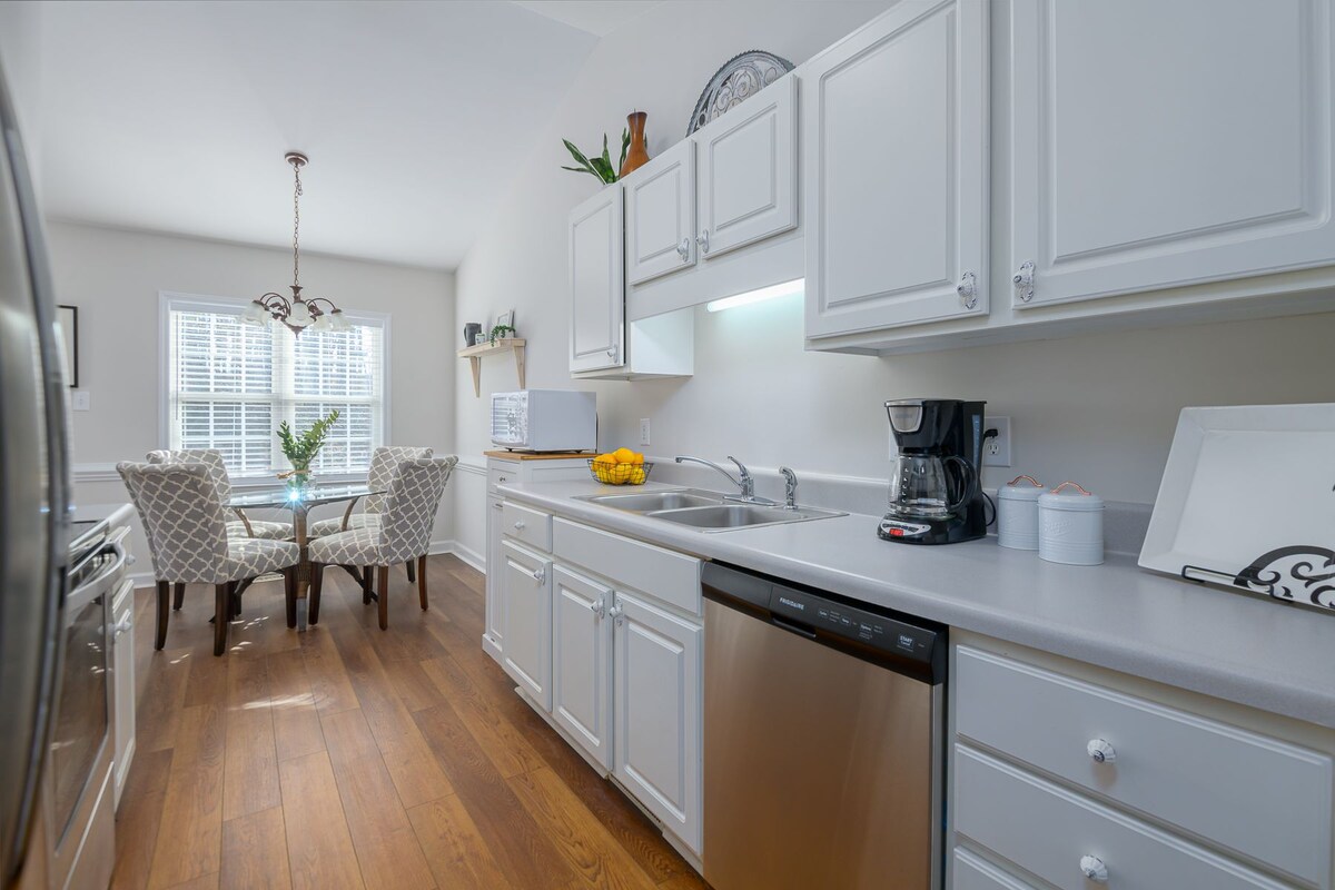 Žavingi, patogūs namai su garažu, vos už kelių kvartalų nuo istorinio miesto centro. Mėgaukitės pasivaikščiojimu miesto centro gatvėse, kuriose yra parduotuvių, restoranų. Kiekviena detalė buvo apsvarstyta jūsų patogumui. Medinės grindys, minkšti šilti metimai, linksmi miegamieji su aukščiausios kokybės čiužiniais ir patalyne! „Master bdrm“ yra dvigulė lova, o antrame miegamajame - karalienė. Trečiame miegamajame yra lova ir rašomasis stalas/darbo vieta, kad galėtumėte patogiai dirbti iš namų. Augintiniai kiekvienu konkrečiu atveju su augintinio mokesčiu