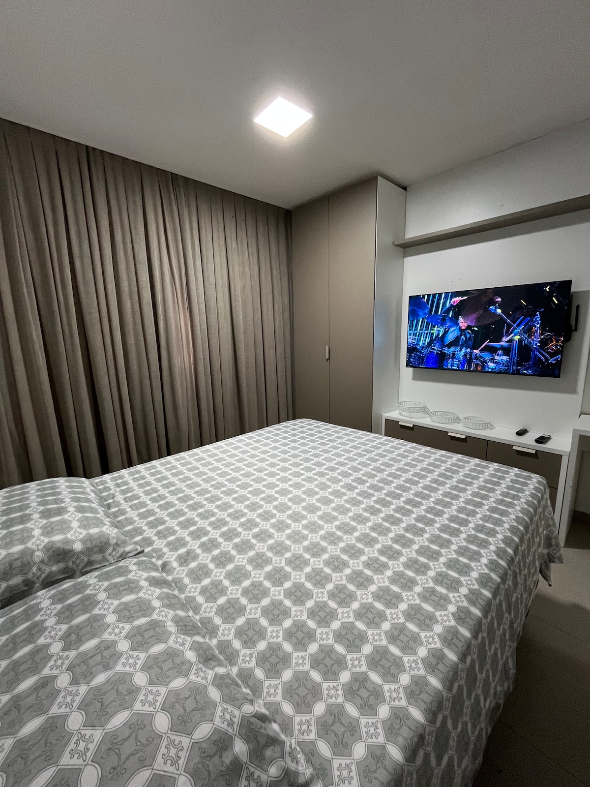 Aukšto lygio butas, kurį sudaro: 1-as miegamasis - 1 dvigulė lova su televizoriumi ir centriniu oru 2-as kambarys - 1 dvigulė lova su centrine oru 3. Miegamasis - 1 dvigulė lova su ventiliatoriumi Butas su visais įrankiais trumpalaikei arba ilgalaikei viešnagei. Erdvus kondominiumas su vaikų erdve, dengtu baseinu, akademija, poilsio sale, Redário ir kepsnine, kad jūsų viešnagė būtų labai maloni.