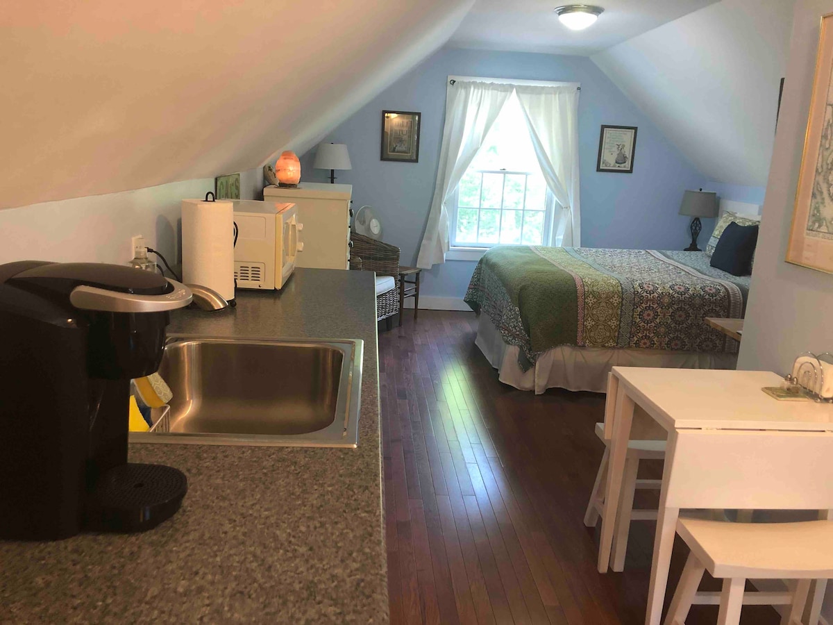 Atviros koncepcijos nedidelė studija, privati terasa ir įėjimas, visa virtuvė. *BENDRA siena tarp studijos ir pagrindinio namo, todėl šiek tiek bendro triukšmo. 2 min. pėsčiomis iki vandenyno , omarų ir bliuzo festivalių. Nedidelis plaukimo paplūdimys yra už 5 minučių kelio, už 5-10 minučių kelio iki Farnsworth ir CMCA muziejų, Strand teatro, restoranų, antikvarinių daiktų parduotuvių ir galerijų. TAIP PAT ATKREIPKITE DĖMESĮ, kad neturime televizoriaus. Turime Wi-Fi, bet turite atsivežti savo įrenginį . ATLEIDIMAS NUO ŠUNS PAGALBININKO PRIĖMIMO