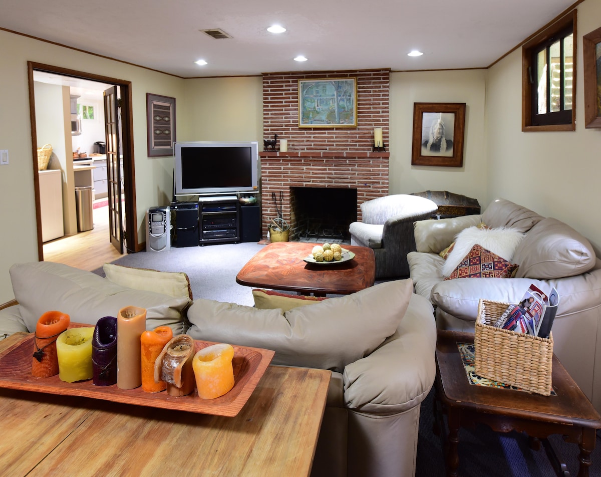 Privatus įėjimas nuves jus (rūsyje) į šią patogią, ramią erdvę su 50colių televizoriumi su „Netflix“, mini šaldytuvu/šaldikliu, mikrobangų krosnele ir kt. Miegamajame yra skaitymo lemputės ir karališko dydžio lova. Atnaujinta patalynė/rankšluosčiai skirta kartu su vieta drabužiams pakabinti. Vonios kambarys su patogumais, įskaitant bidė. Namai yra vos už kelių minučių kelio pėsčiomis nuo geriausio miesto parko, restoranų ir parduotuvių! Masinis tranzitas yra už kelių žingsnių ir yra pagrindinė dviračių gatvė.