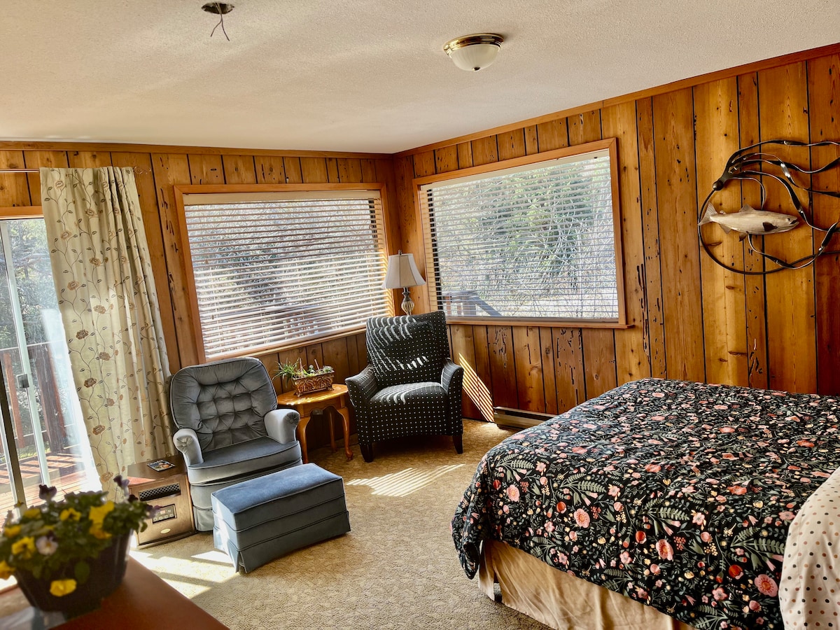 Take a break and unwind at our peaceful oasis. We are a short 5-10min downhill walk to Museum, Shops, Pier, and Sea Walk. Hospital 2 blocks away. Enjoy delicious ice cream at the Pier, fishing or watch for whales and other marina life goes by. Across the street there's a lovely park with tennis courts, (enjoy a game or 2 with tennis/pickle ball racquets provided) and an outdoor swimming pool. We are 20 min drive to local sandy beaches, and 12 min to Elk Falls/Suspension bridge & McIvor lake.