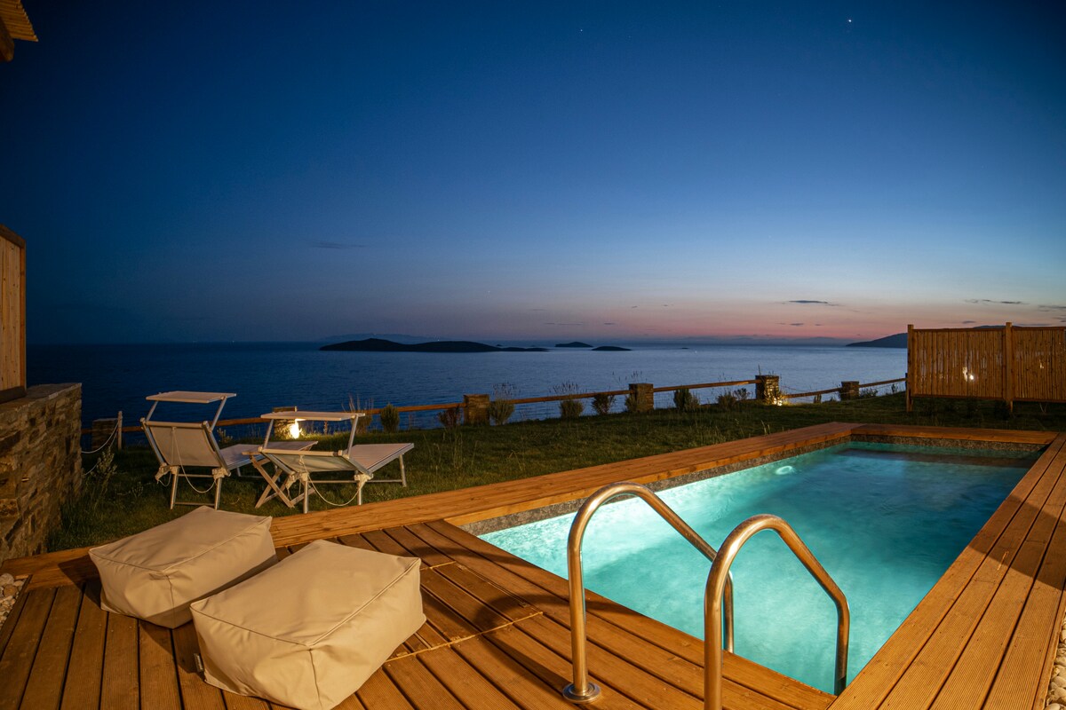 Erdvūs namai 9 žmonėms su neprilygstamu vaizdu į Aegeno jūrą, 150 metrų nuo centro ir aplink paplūdimius. Jame yra 4 erdvūs miegamieji ( du kambariai su atskiru vonios kambariu ir dviejų miegamųjų butas su papildomu vonios kambariu). Virtuvės valgomasis su visais buitiniais prietaisais. Privatus baseinas ir privatus garažas.