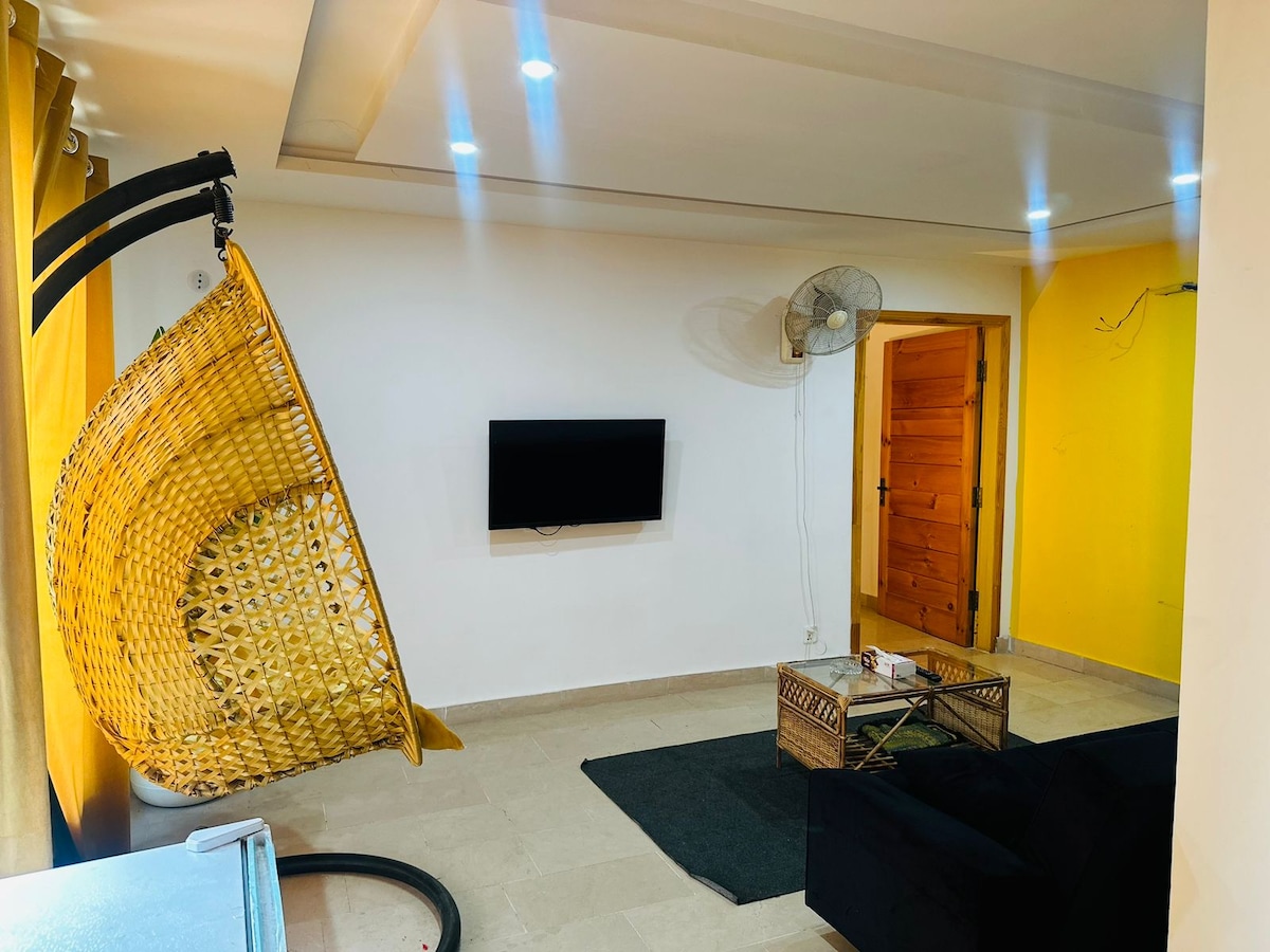 ●Kick back and relax in this calm, stylish space. ●Enjoy your getaway in a home away from home in this cozy and private studio apartment which is well suited for couples and family. ●It is very stylishly furnished with contemporary furniture and huge 55 inch TV for satisfying all your theatre cravings. ●Mini kitchen provides access to a quick snack, a cold drink and popcorns. Fitted with a huge AC, relax in this chilled spot to relieve your stress and get that resort like feel. Happy Stay!