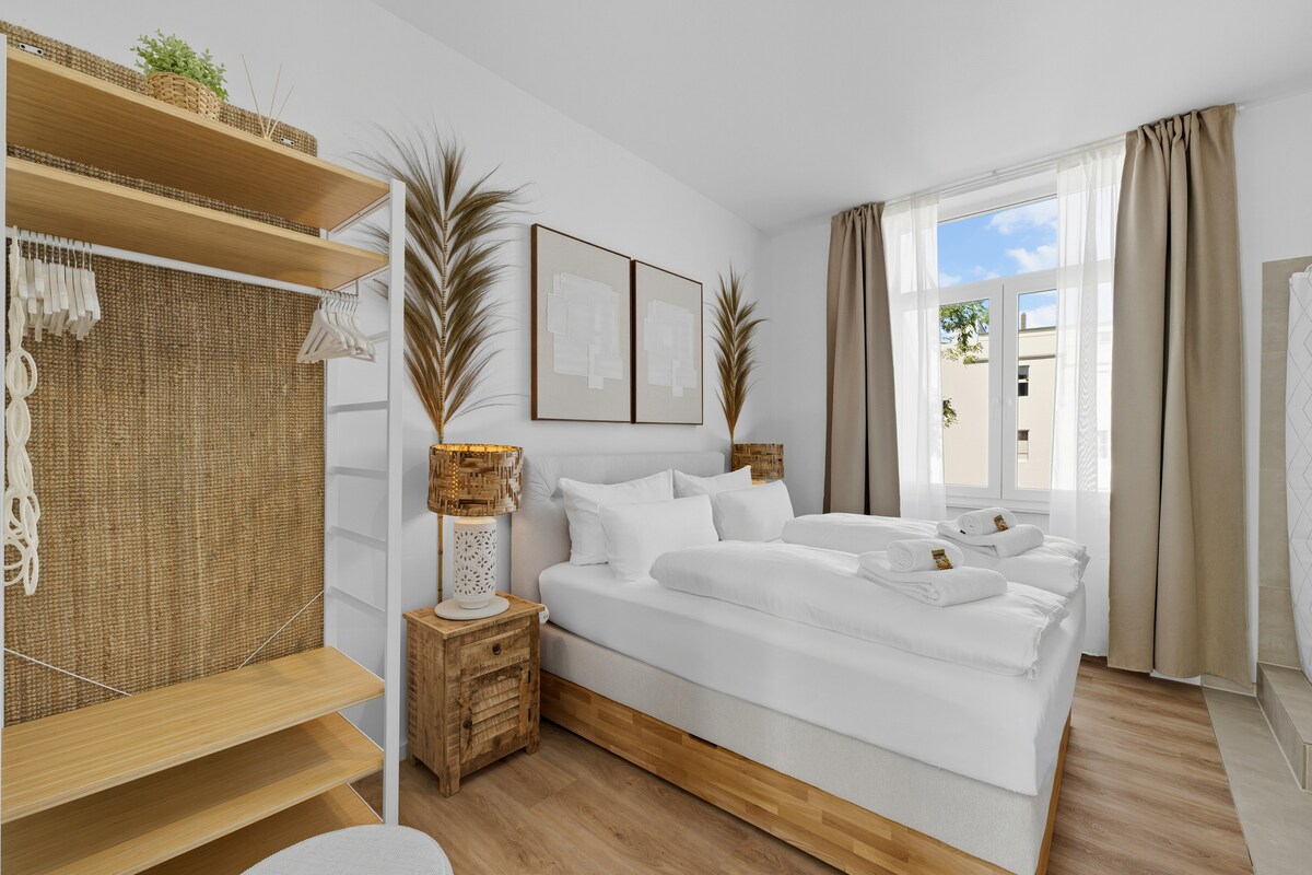Šiuolaikinė atmosfera, aukštos kokybės baldai ir puiki vieta pačioje miesto širdyje. Apytiksliai 70 kv. m butas yra netoli Reino. Garsiosios aikščių „Heumarkt“ ir „Alter Markt“ (mažiau nei 50 m), katedra, muziejai, filharmonijos salė, opera, pagrindinė stotis ir prekybos gatvės Schildergasse ir Hohe Strasse pasiekiamos per kelias minutes pėsčiomis. Transporto jungtys - taip pat ir mugės lankytojams - yra puikios ir negali būti geresnės.