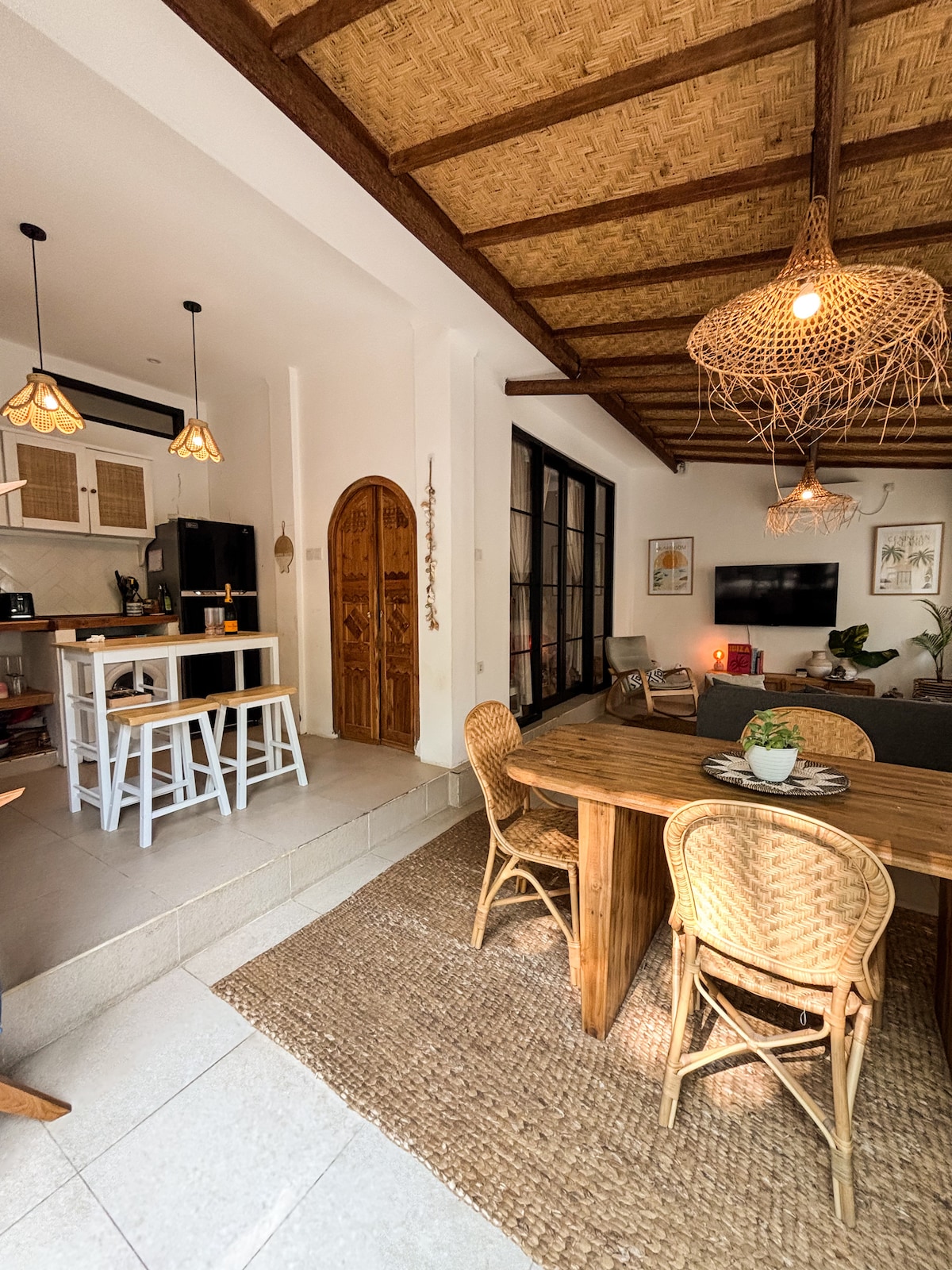 Pabėkite į mūsų atogrąžų rojų vos už 100 metrų nuo nepriekaištingo paplūdimio! Mūsų bambukiniai vienaaukščiai vasarnamiai, įsikūrę vešlios žalumos apsuptyje, siūlo ramų poilsį su privačiu sodu ir hamaku, kad atsipalaiduotumėte. Kelios minutės pėsčiomis nuo pagrindinės gatvės su daugybe barų ir restoranų. Žavingi bambukiniai vienaaukščiai vasarnamiai, skirti kaimiškam, bet patogiam potyriui. Kiekviename vienaaukščiame vasarnamyje yra oro kondicionierius ir karštas vanduo. Sėdėjimo zona, skirta mėgautis ramia aplinka ir greičiausiu Wi-Fi saloje!