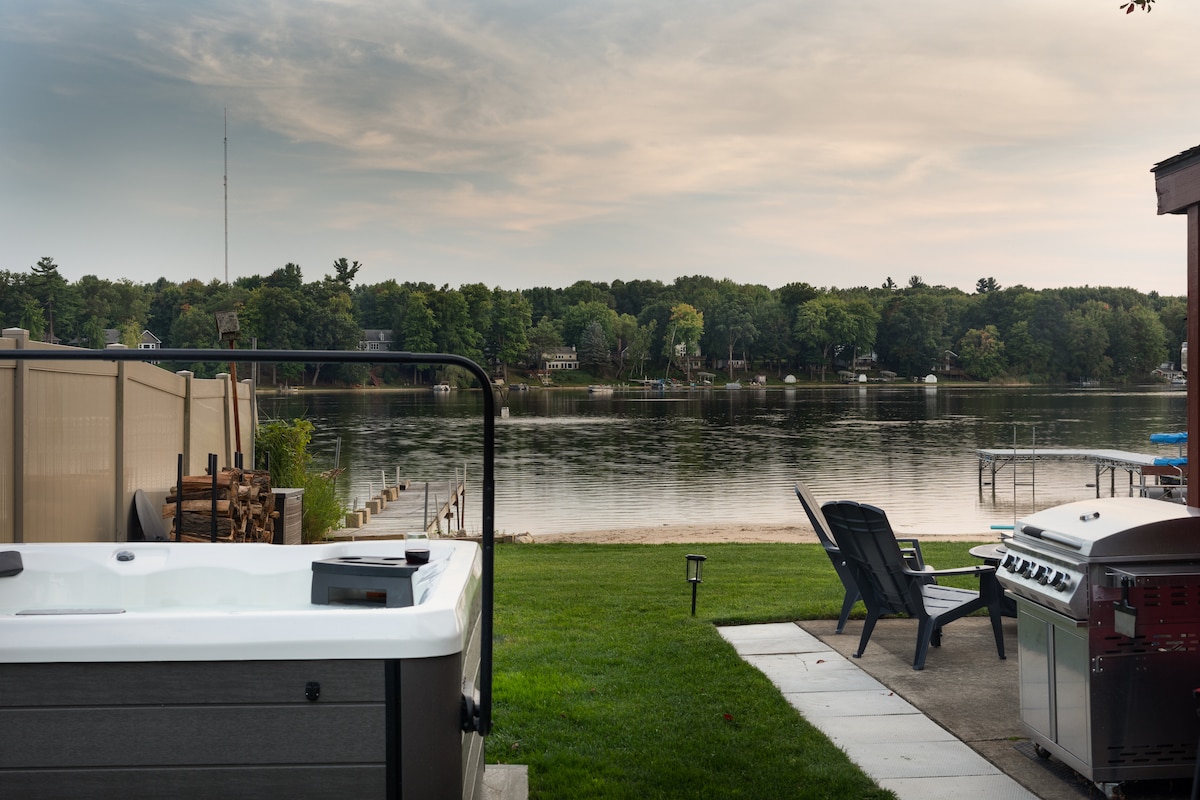 Prie ežero 3BR su Tiki baru + Blackstone + paplūdimys
