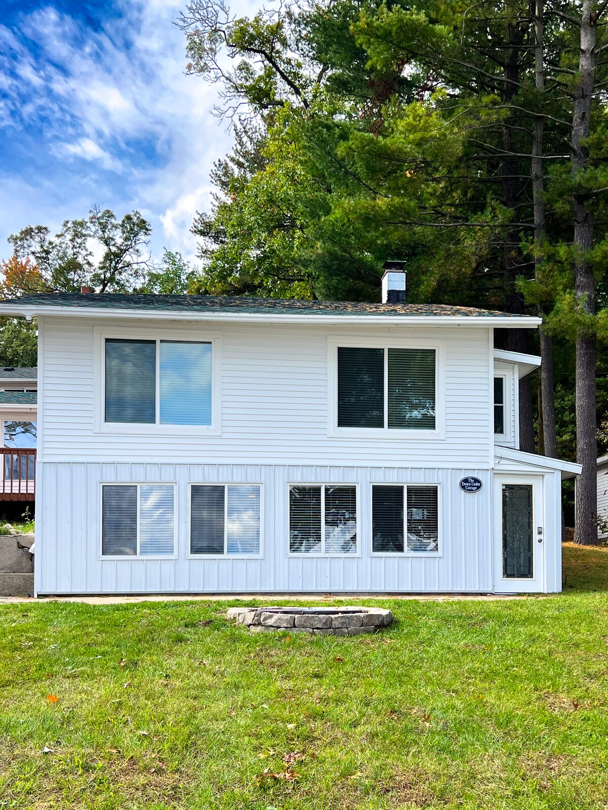 Mėgaukitės privačia pakrante prie gražaus Crystal ežero! Mūsų atnaujintame 768 kv. pėdų kotedže yra beveik viskas, ko reikia savaitgalio ar savaitės trukmės viešnagei! Mūsų 2 baidarėmis tyrinėkite ežerą. Vos už 15 minučių kelio automobiliu iki Sidabrinio ežero smėlio kopų arba atpalaiduojančio pasivaikščiojimo Pentvoterio centre. Mėgaukitės kvapais prie ugnies ir mėgaukitės mūsų gražiais saulėlydžiais. Crystal Lake yra smėlio dugno ežeras su švariu vandeniu. @crystalbluffcottage