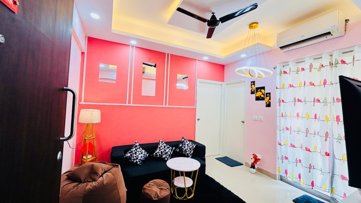 Mėgaukitės prabanga šiame stilingame studijos tipo bute, esančiame netoli oro uosto ir prekybos centro „CC2“. Puikiai tinka poroms, šeimoms ir draugams, ieškantiems ypatingos išvykos. Šis butas, kuriame yra daugiau nei 100 Mbps spartos internetas, taip pat idealiai tinka tiems, kurie dirba iš namų. Mėgaukitės prieiga prie baseino ir sporto salės bei susisiekite, nes būstas yra netoli pagrindinių lankytinų vietų: už 6 km nuo Kolkata tarptautinio oro uosto, už 1 km nuo II miesto centro ir už 2 km nuo Eco parko.