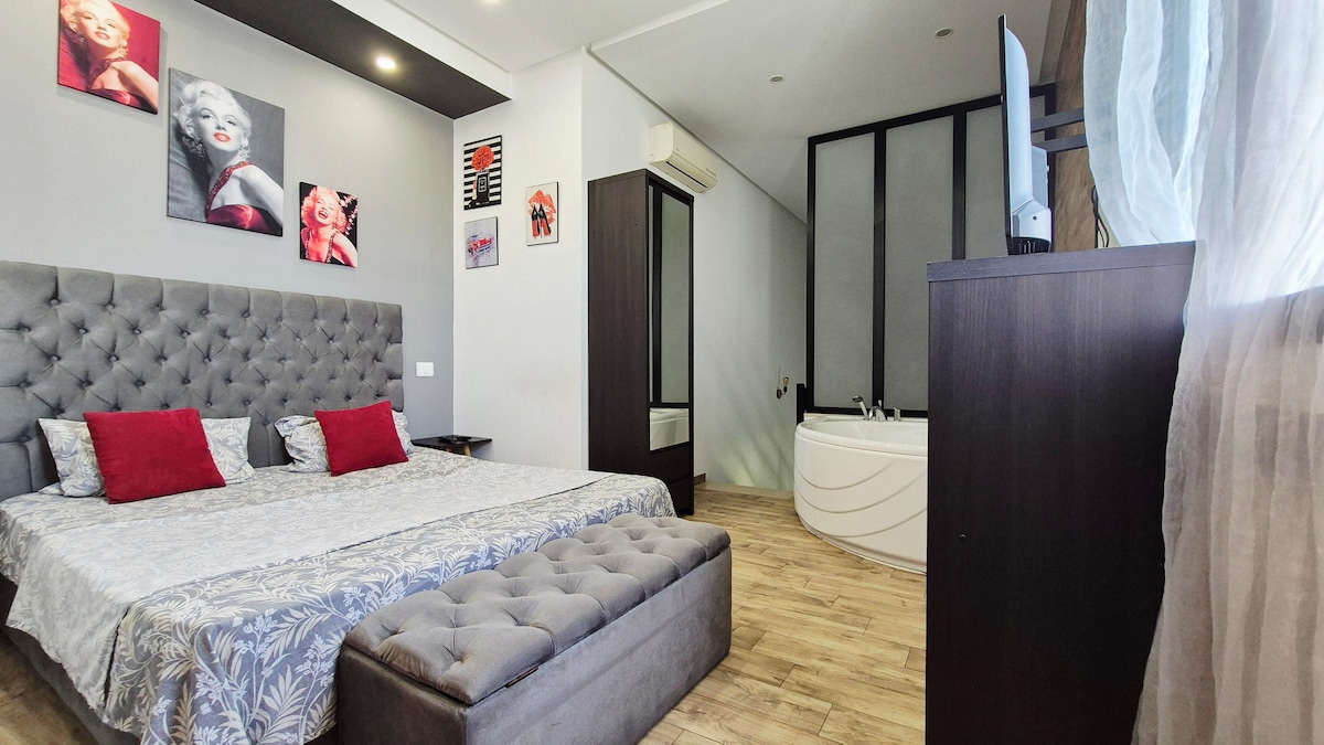 sveiki atvykę į Chiraz Loft loftas yra prabangioje rezidencijoje su bendru baseinu labai gyvybingoje vietoje šalia visų patogumų loftą sudaro įėjimas į svetainę su labai gerai įrengta amerikietiška virtuve ir balkonas su vaizdu į baseiną ir su Wi-Fi ir IP televizoriumi dvivietis miegamasis normalaus dydžio lova su mažu balkono džiovintuvu su skalbimo mašina