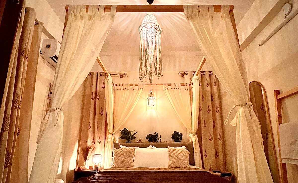 Tai erdvus, stilingas, pilnai įrengtas jaukus butas, idealiai tinkantis poros/draugų išvykai. Jame yra kintamoji srovė, virtuvė, šaldytuvas, 55pėdų LED televizorius ir automobilių stovėjimo aikštelė. Jame yra karalienės dydžio lova ir sofa. Jis yra strategiškai patogioje vietoje, Šiaurės Bangalore, netoli Manyata Tech Park, Sobha City, Barely 3-4 km nuo Hebbal Ring Road, o tarptautinis oro uostas yra vos už 30 min. kelio automobiliu. Reikalavimai: turite pateikti galiojantį asmens tapatybės dokumentą kiekvienam atvykstančiam suaugusiajam.